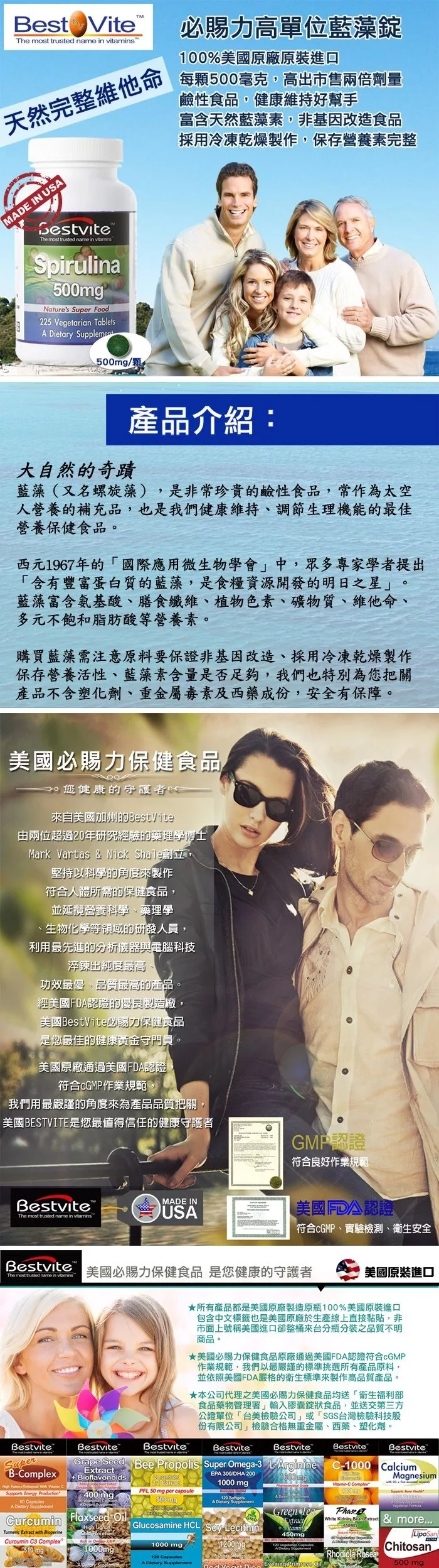 【美國BestVite】必賜力高單位藍藻錠 (225錠)好用嗎?